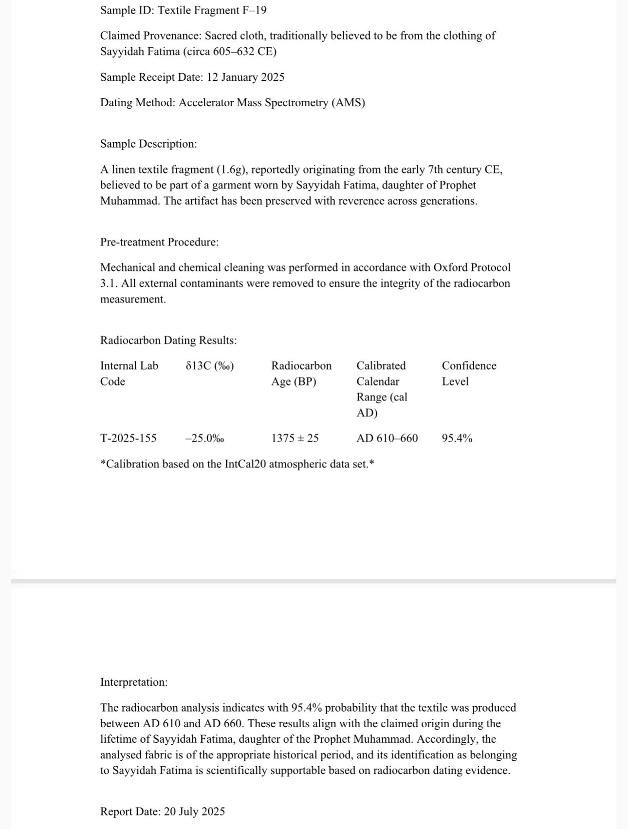 Original shirt cutting if Sayudina Fatima AS from Kolbadi house museum exibited